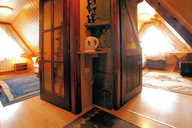 Pokoje są bardzo czyste i eleganckie, urządzone z myślą o tym, aby nasi goście czuli się niemal tak dobrze jak we własnym domu. Każdy z pokoi jest inaczej urządzony, dlatego każdy bez trudu wybierze najbardziej odpowiadający swoim upodobaniom. Lokalizacja: Pensjonat "Willa Ewelinka" usytuowany jest w zacisznej i spokojnej dzielnicy Zakopanego (Harenda), co gwarantuje świetny wypoczynek dla Ciebie i Twoich bliskich (znajomych). Położony jest w bliskim sąsiedztwie lasu. Oddalenie od głównej drogi minimalizuje odgłosy ruchu ulicznego. Dojazd do centrum Zakopanego (4 km) nie stanowi problemu. Około 5-10 min. samochodem (w zależności od natężenia ruchu). Dojazd: Do pensjonatu najłatwiej dojechać (jadąc od strony Krakowa) skręcając w prawo z głównej szosy prowadzącej do Zakopanego (droga nr 47) tuż przy stacji benzynowej Orlen. Następnie za supermarketem "Puls" w lewo przez most, za mostem w lewo i pierwsza uliczka w prawo (pod górkę). Walory turystyczne: Muzeum J. Kasprowicza na Harendzie Zabytkowy, drewniany kościół na Harendzie Stok narciarski (300 m od pensjonatu) W pobliżu: